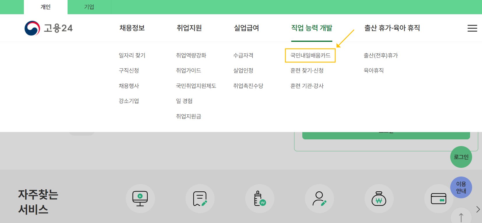 카드가 발급된 후, 본인이 원하는 훈련 과정을 검색하고 수강 신청을 할 수 있습니다.